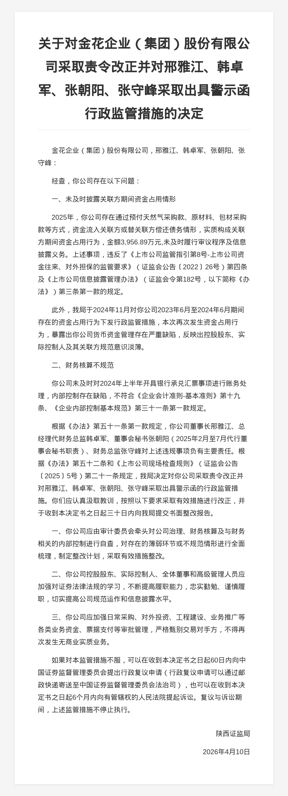 金花股份被责令改正,涉财务核算不规范等