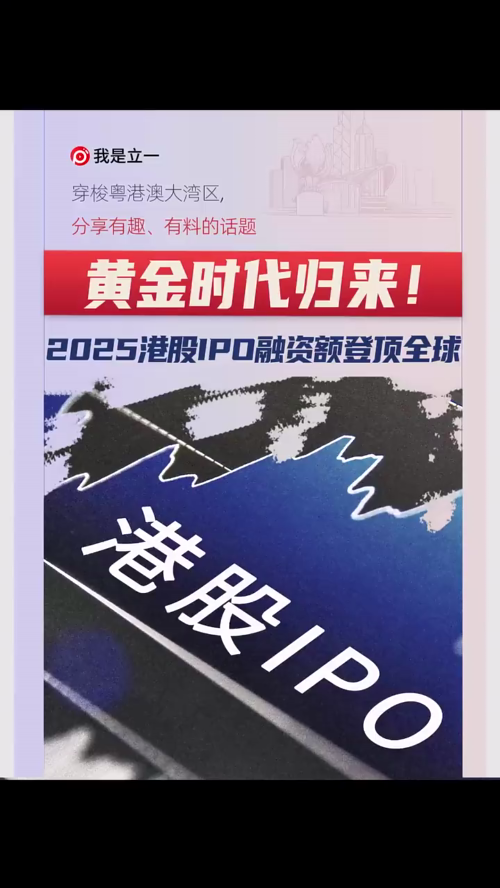 我是立一黄金时代来了!2025港股IPO融资额登顶全球